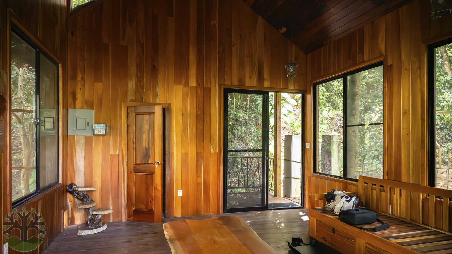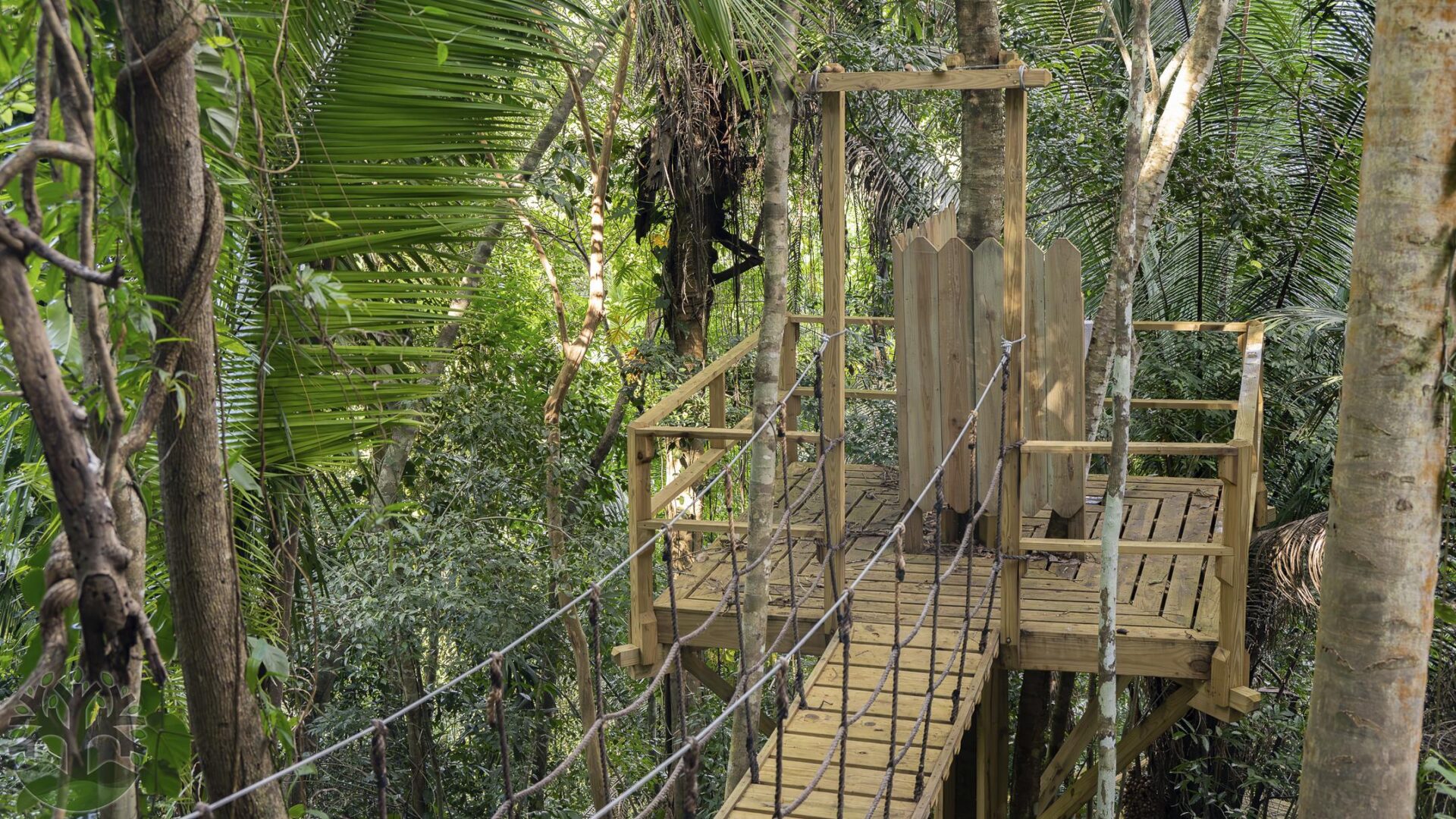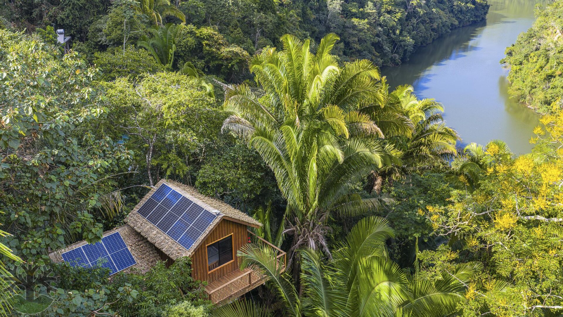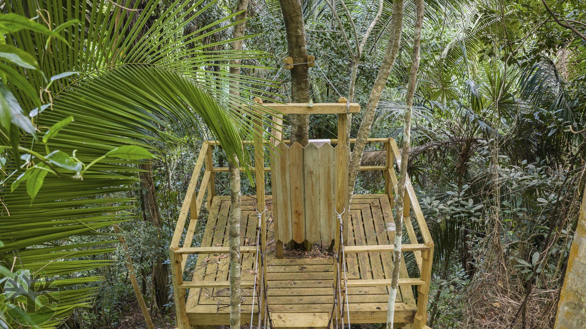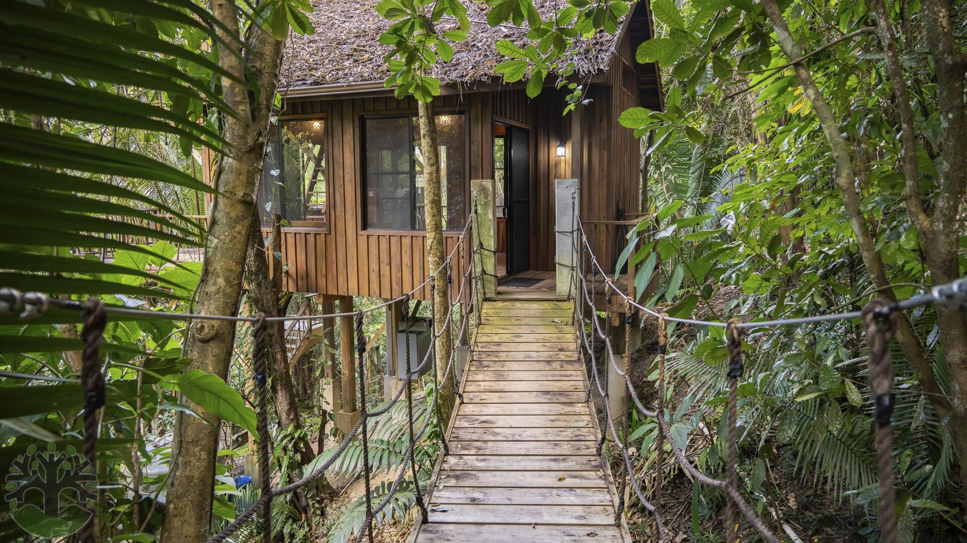 A stunning treehouse perched atop the high banks of the Macal River on a dramatic ¾-acre bluff. This one-of-a-kind sanctuary is an architectural statement piece, offering sweeping views of the Macal River and surrounding Maya Mountains from an elevated, bird’s-eye vantage point rarely found in Belize. Arrival is via a hammock bridge that serves as the main entryway, immediately setting the tone for the experience. The home is crafted entirely of local hardwood with expansive glass windows throughout, creating a seamless blend of indoor and outdoor living. An artificial thatch roof enhances durability while adding to its distinctive tropical character. The two-level residence features expansive verandahs wrapping both floors, providing generous open-air living space immersed in the surrounding canopy. The main level includes an indoor living area, bathroom, and fully equipped outdoor kitchen, designed for functional yet organic flow. Above, the private master suite is suspended within the treetops, offering privacy and panoramic views. The property was intentionally designed with three additional elevated platforms below the main home. Originally envisioned to be connected by zipline, the concept offers exciting potential for recreation or expansion. Despite its secluded setting, the property is approximately 40 minutes from town, which enjoys all the necessary amenities and modern conveniences. The home is fully off-grid and self-sufficient, equipped with a solar power system for electricity and a cistern/pump combo for potable water. It also has Starlink connectivity for internet, offering the best of modern comfort in a truly radical environment. This lifestyle property is ideal for a private residence, creative escape, or jungle rental, take advantage to own a truly unique property in the jungles of Cayo!