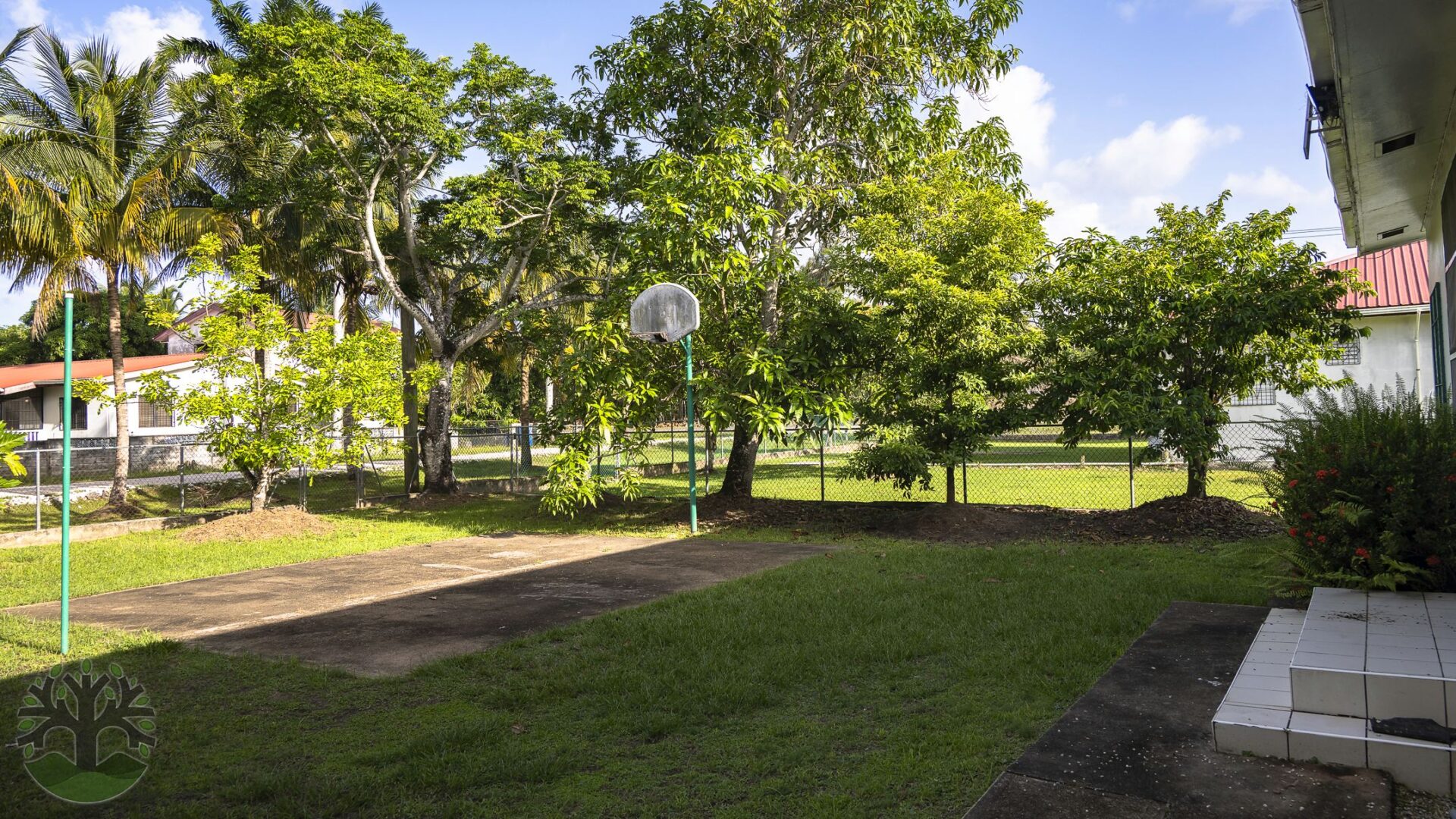 · Fully fenced yard with mature, fruit-bearing trees and a concrete basketball/volleyball court